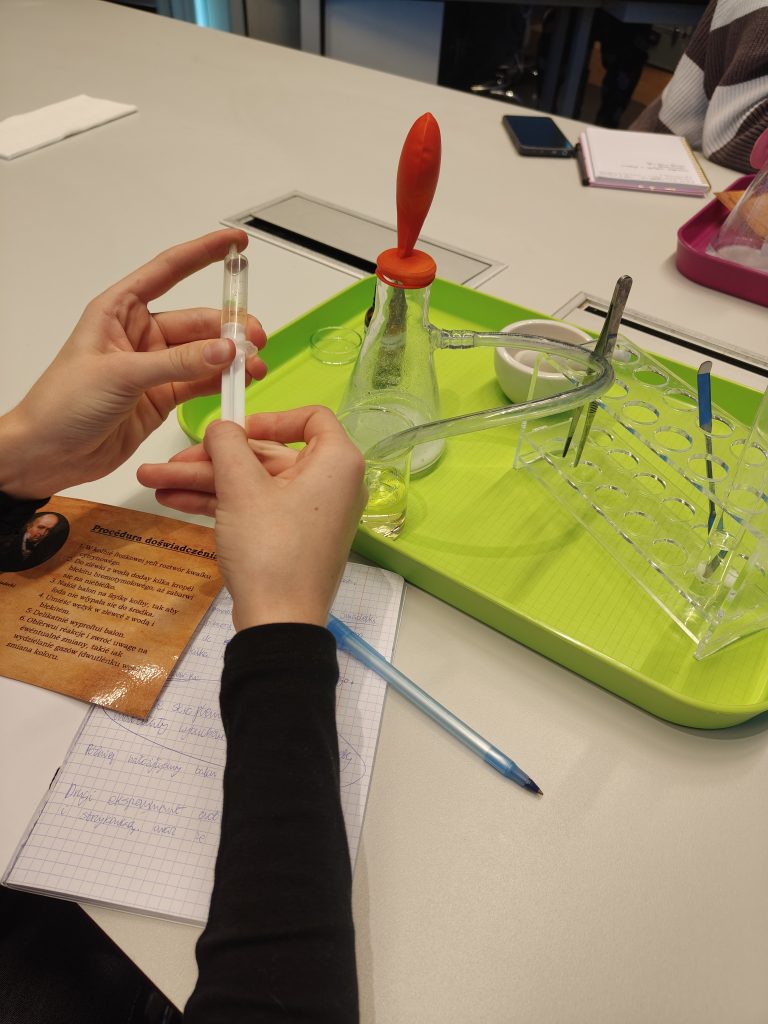 Podczas zajęć, pod okiem doświadczonych edukatorów, uczniowie mieli okazję samodzielnie przeprowadzać różnorodne doświadczenia. Odkrywali tajniki chemii, ucząc się o właściwościach substancji, mieszaniu różnych odczynników i obserwując spektakularne efekty. Z zapałem tworzyli kolorowe roztwory, sprawdzali, jak zmienia się stan skupienia materii i poznawali chemię od najbardziej zaskakującej strony