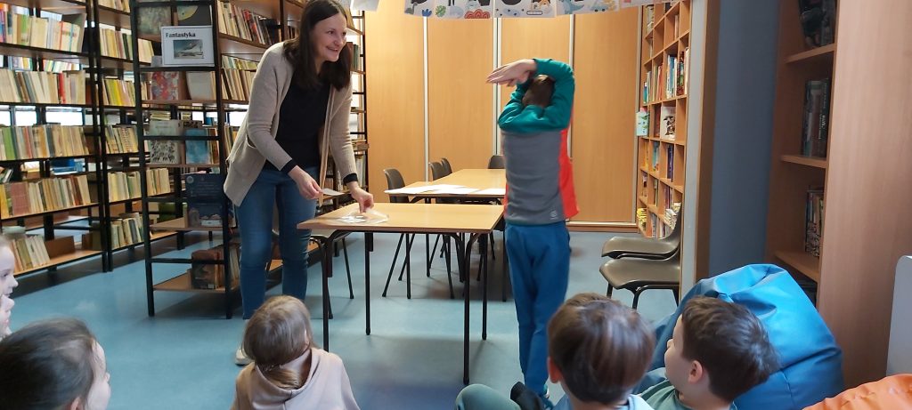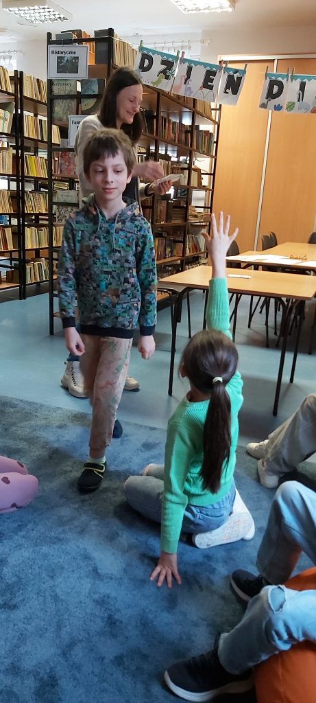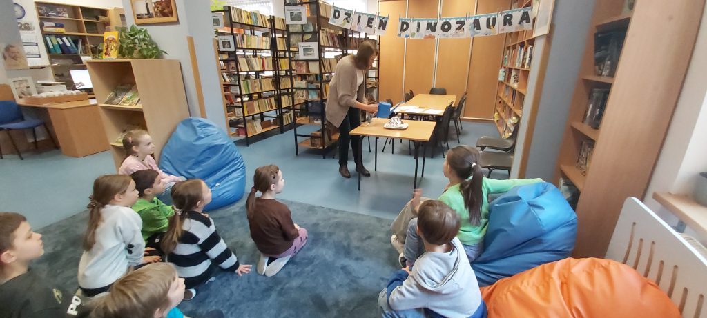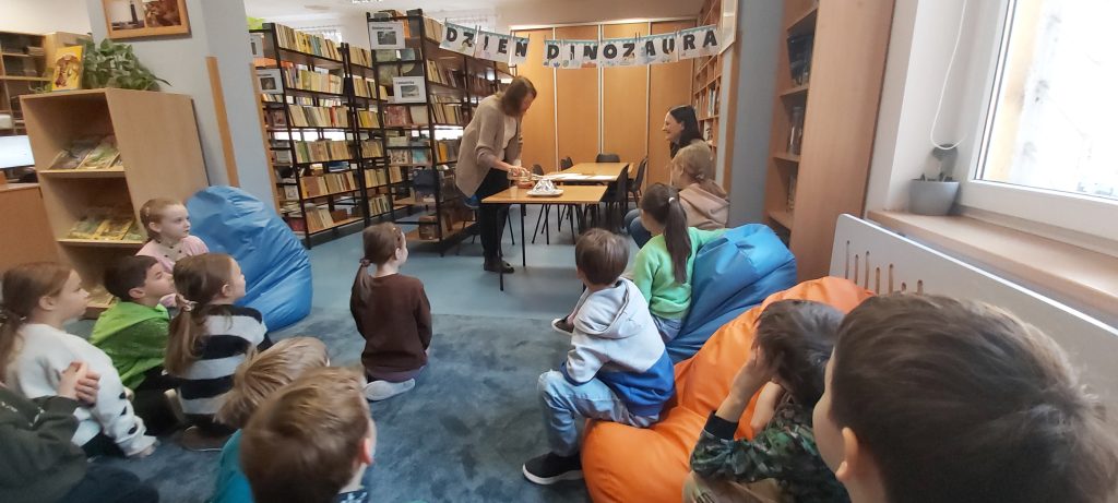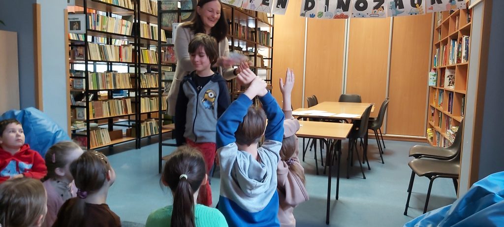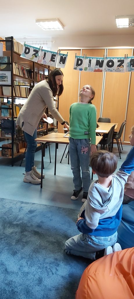 Kolejnym elementem zajęć była zabawa edukacyjna polegająca na „sprawdzaniu”, co poszczególne dinozaury mają w swoich brzuchach. W ten sposób uczniowie utrwalili wiedzę o tym, które gatunki były roślinożerne, a które mięsożerne.