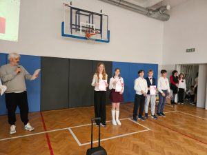 W środę 12.11.25 klasy starsze wzięły udział w apelu z okazji Święta Niepodległości. Dziękujemy klasie VIa, która przygotowała krótkie wprowadzenie o Święcie. W trakcie uroczystości odśpiewaliśmy hymn, pieśń szkoły oraz kilka pieśni patriotycznych. Był też czas na wręczenie nagród za Bieg Niepodległości, który odbył się 7.11.25.