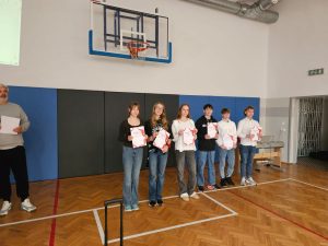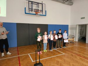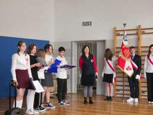 W środę 12.11.25 klasy starsze wzięły udział w apelu z okazji Święta Niepodległości. Dziękujemy klasie VIa, która przygotowała krótkie wprowadzenie o Święcie. W trakcie uroczystości odśpiewaliśmy hymn, pieśń szkoły oraz kilka pieśni patriotycznych. Był też czas na wręczenie nagród za Bieg Niepodległości, który odbył się 7.11.25.