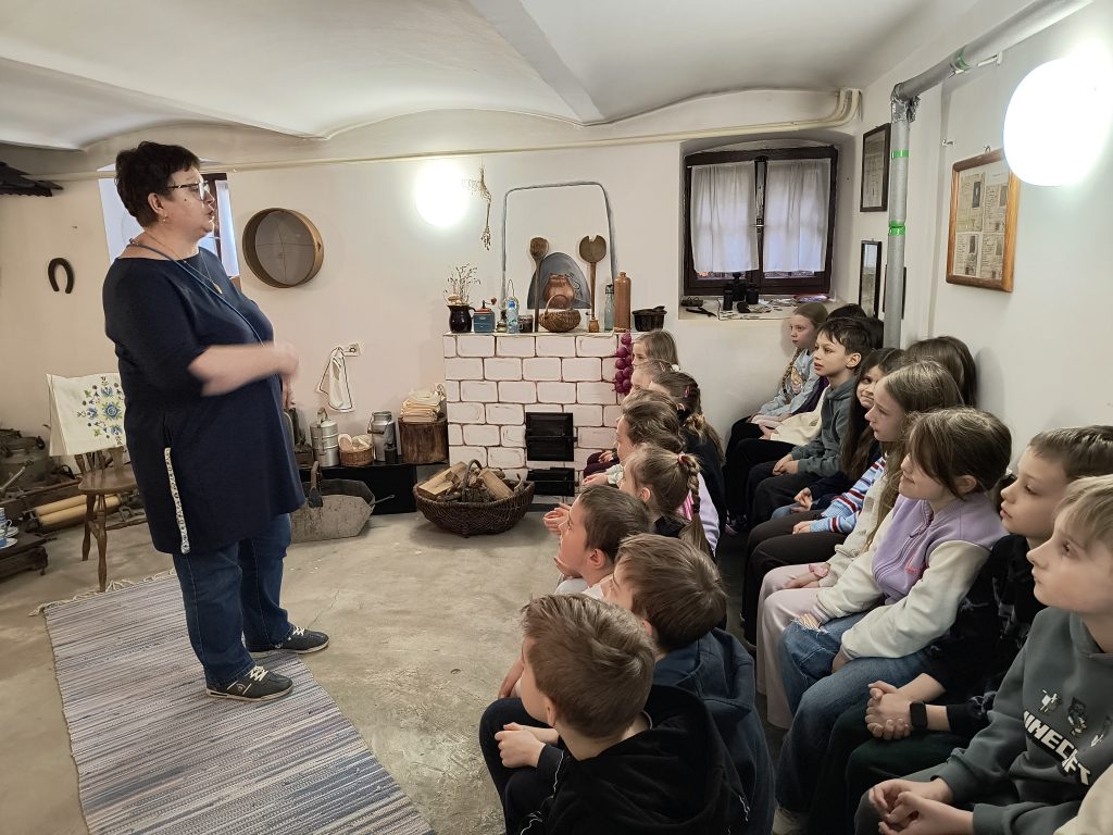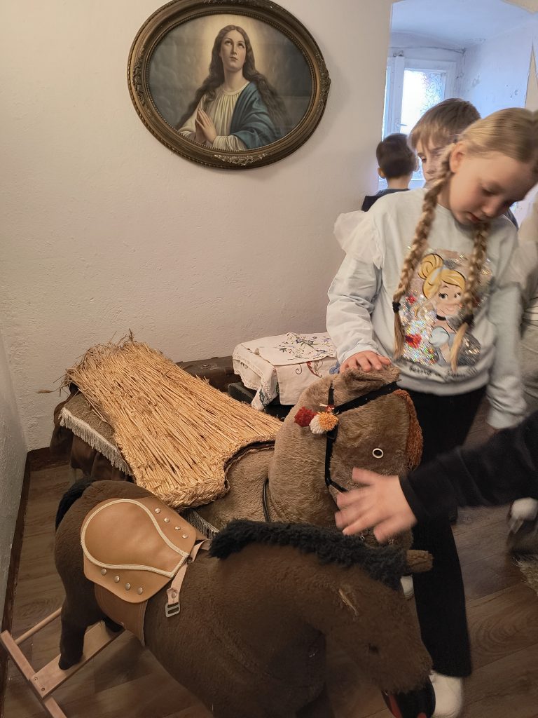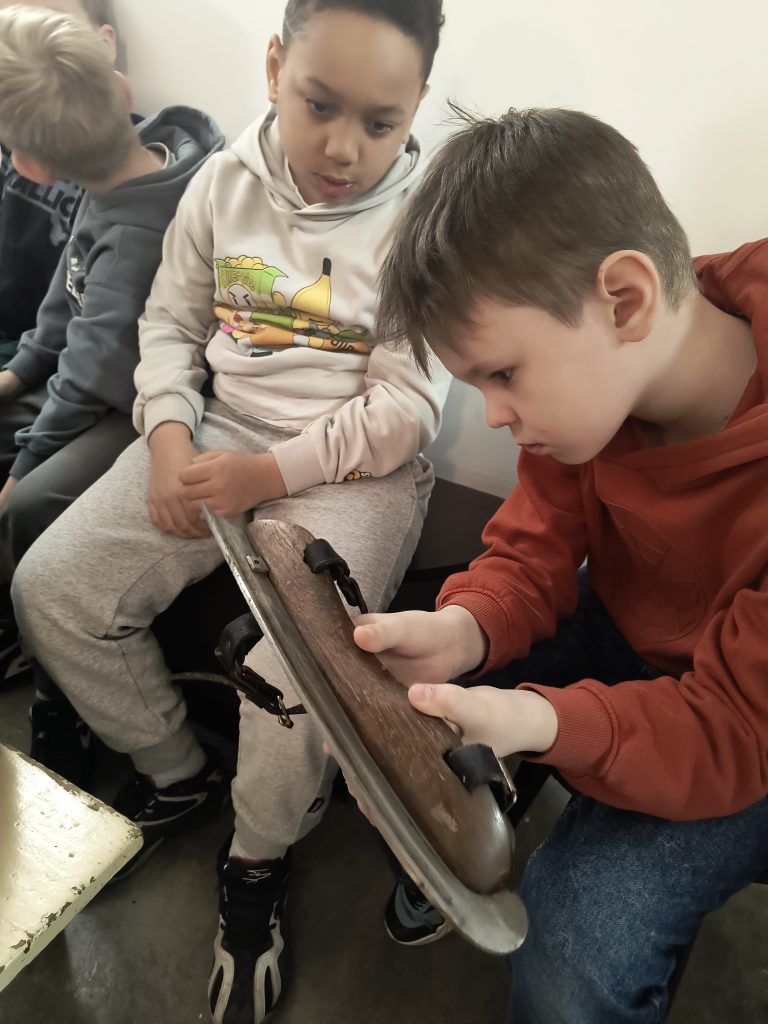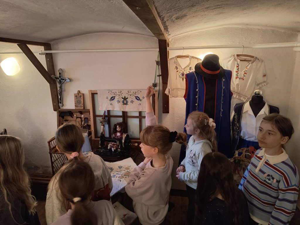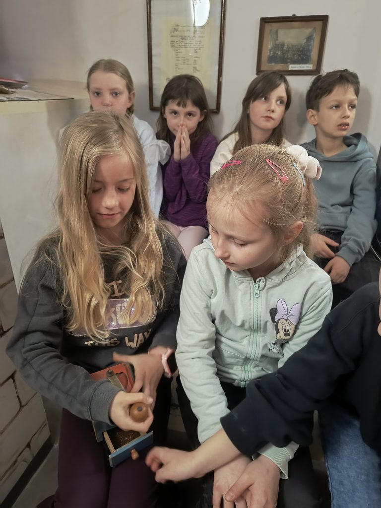 W piątek 17.04. klasa 2A odwiedziła chylońską Szkołę Podstawową nr 10, a konkretnie budynek zwany Skansenem. W ceglanym Skansenie, wpisanym na listę zabytków, znajduje się Izba Kaszubska, która była celem tej wycieczki. Zgromadzono w niej pamiątki związane z przeszłością dawnej wsi chylońskiej. Naszą przewodniczką po Izbie i po dawnych czasach Chyloni była p.Hanna Rogozińska – bibliotekarka SP10. Dzieci miały okazję nie tylko wysłuchać opowieści o dawnym życiu mieszkańców naszej okolicy, lecz także dotknąć i wypróbować niektóre ze zgromadzonych eksponatów. Była to niezwykle ciekawa i wartościowa lekcja historii.