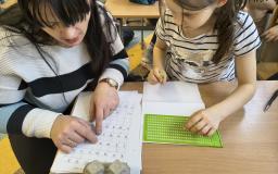W ramach kolejnej edycji projektu „Gramy zmysłami”, uczniowie wyruszyli w fascynującą podróż do świata dotyku. Tym razem skupiliśmy się na tym, jak za pomocą dłoni można nie tylko czuć faktury, ale i czytać skomplikowane komunikaty. Głównym punktem zajęć był alfabet Braille’a. Wykorzystując specjalistyczny sprzęt, dzieci uczyły się tworzenia wypukłych punktów, które dla osób niewidomych są oknem na świat literatury i wiedzy. Największą radość i dumę sprawiło uczniom samodzielne zapisanie własnych imion. Każdy mógł palcami „zobaczyć”, jak wygląda jego imię w języku kropek. W programie zajęć znalazły się również: warsztaty kaligrafii dotykowej – tworzenie liter przy użyciu przyborów do pisania pismem punktowym, zagadki – odgadywanie haseł zapisanych przez kolegów i koleżanki na tablicy– co okazało się doskonałym treningiem koncentracji, lekcja empatii – rozmowa o tym, jak zmysły współpracują ze sobą i jak radzić sobie, gdy jeden z nich jest ograniczony. Dzięki tym ćwiczeniom dzieci nie tylko rozwinęły swoją sprawność manualną (tzw. małą motorykę), ale przede wszystkim otworzyły się na nowe formy komunikacji. Okazało się, że dotyk ma swoją własną, niezwykłą opowieść!