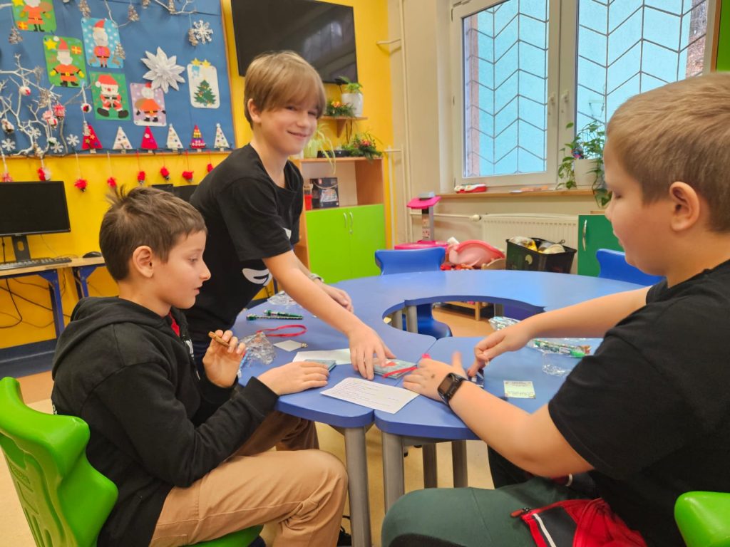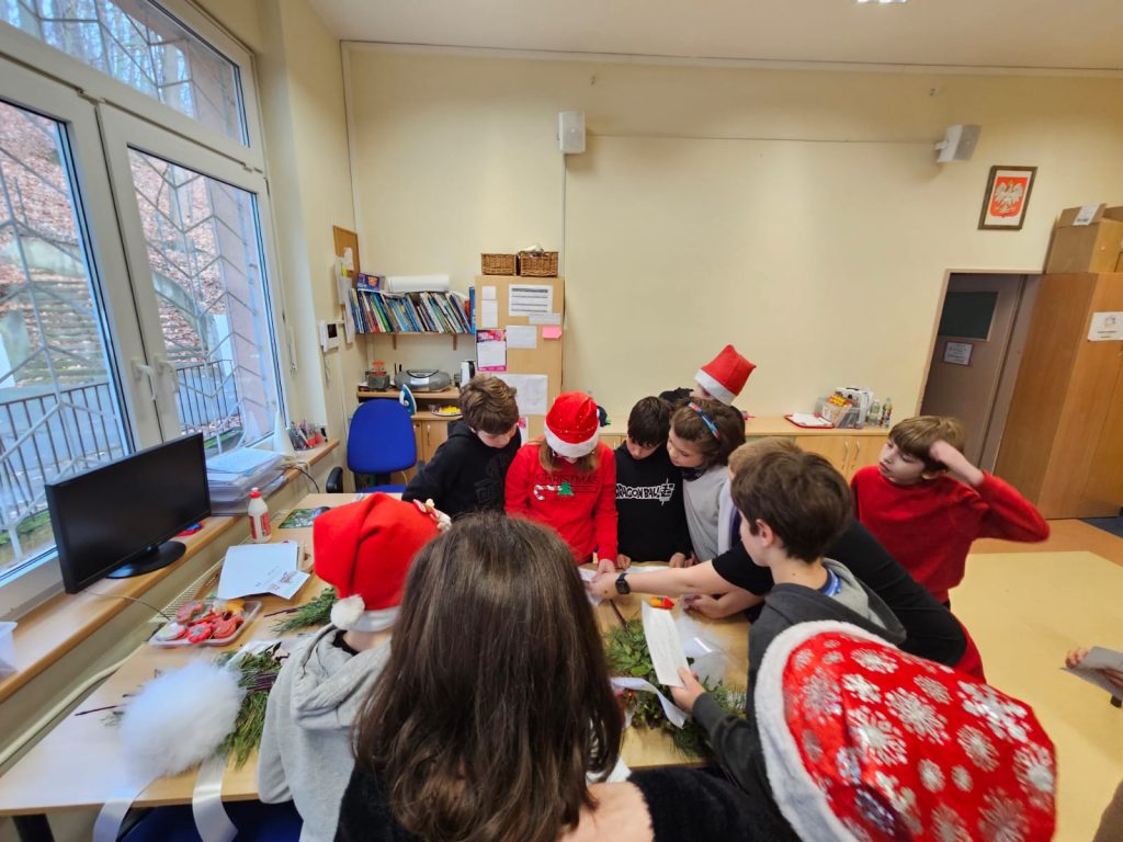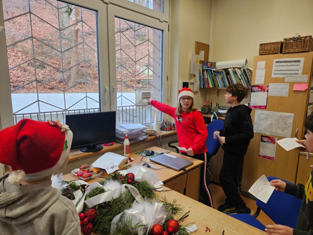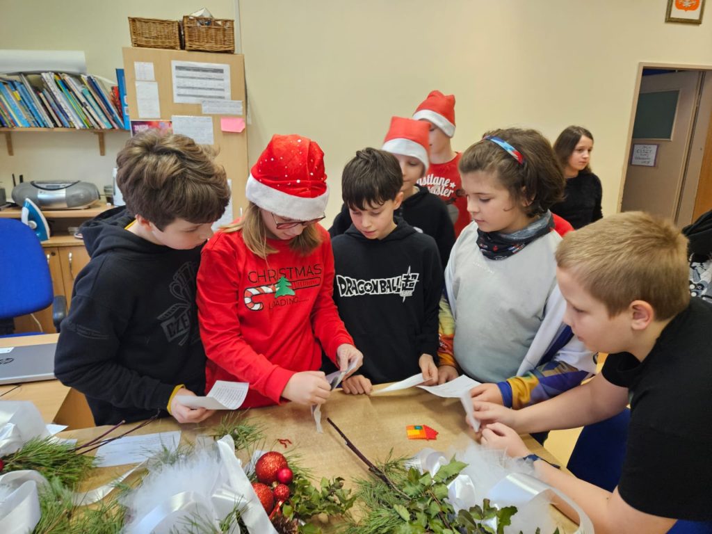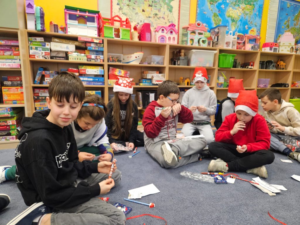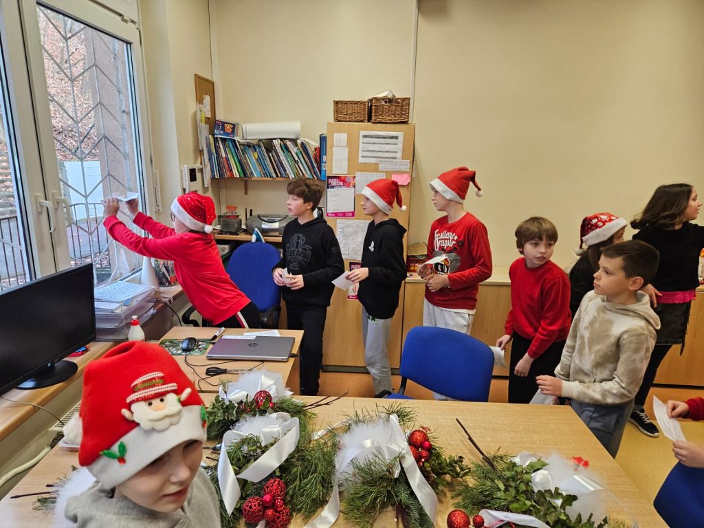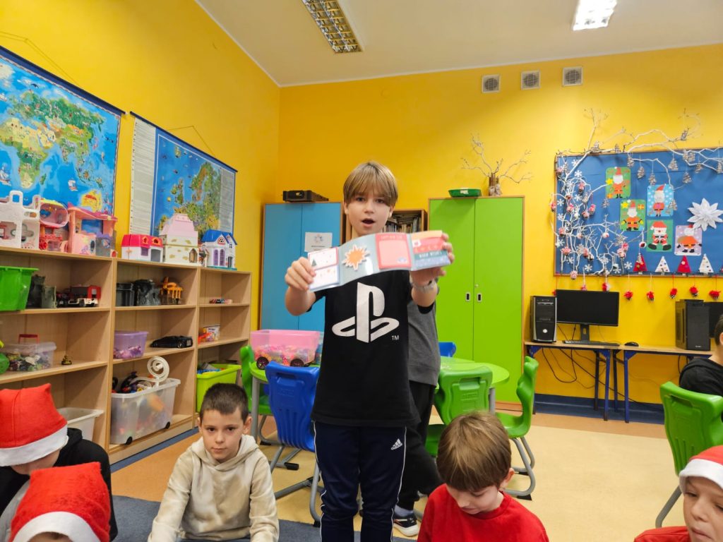 Mikołajki w klasie 4C polegały na wspólnej zabawie w szukanie prezentów ukrytych w szkole. Uczniowie podążali za wskazówkami napisanymi po angielsku przez Świętego Mikołaja, które prowadziły ich do kolejnych miejsc. Zabawa była pełna radości i współpracy. Na końcu wszyscy odnaleźli prezenty i wspólnie świętowali. 🎁😊