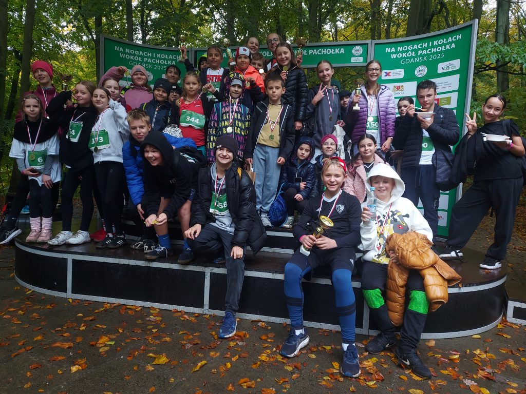 Jesteśmy niesamowicie dumni z reprezentacji naszej szkoły (34 uczniów), która wzięła udział w biegu „Na nogach i kółkach Wokół Pachołka” w dniu 17.10.2025r. Pomimo zmiennej pogody, nasi uczniowie pokazali prawdziwą wolę walki i wrócili do szkoły zadowoleni z medalami i pucharami!!!