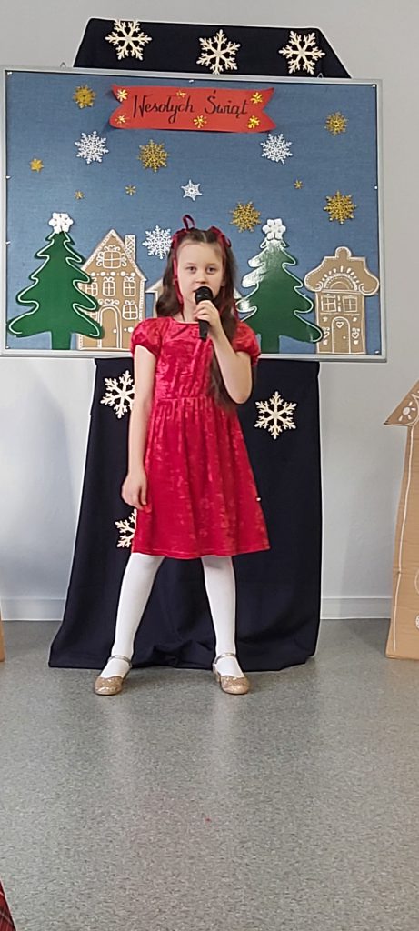 Dziś, 11 grudnia 2025 roku, uczennica klasy 1 a- Michalinka Szajman, reprezentowała naszą szkołę w Miejskim Konkursie Piosenki Świątecznej, który odbył się w Szkole Podstawowej nr 26 w Gdyni. Konkurs objęty był patronatem Prezydent Miasta Gdyni- Aleksandry Kosiorek. Nasza dzielna Michalinka zaśpiewała uroczą i nastrojową piosenkę pt. ,, Pachnie świętami”. Osobowością sceniczną i wykonaniem, uczennica urzekła szanowne Jury i wywalczyła 1 miejsce. Michasia była na konkursie ze swoją wychowawczynią Renata Reszelewska-Ambroziak.