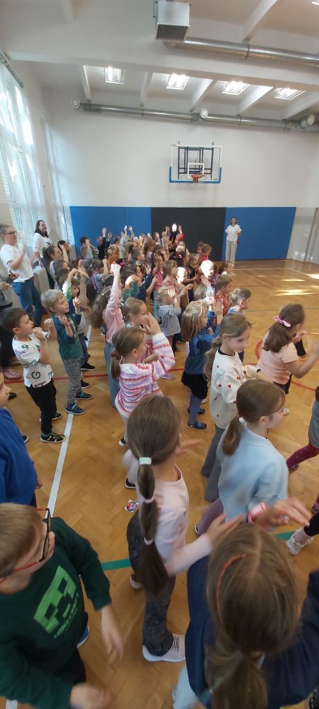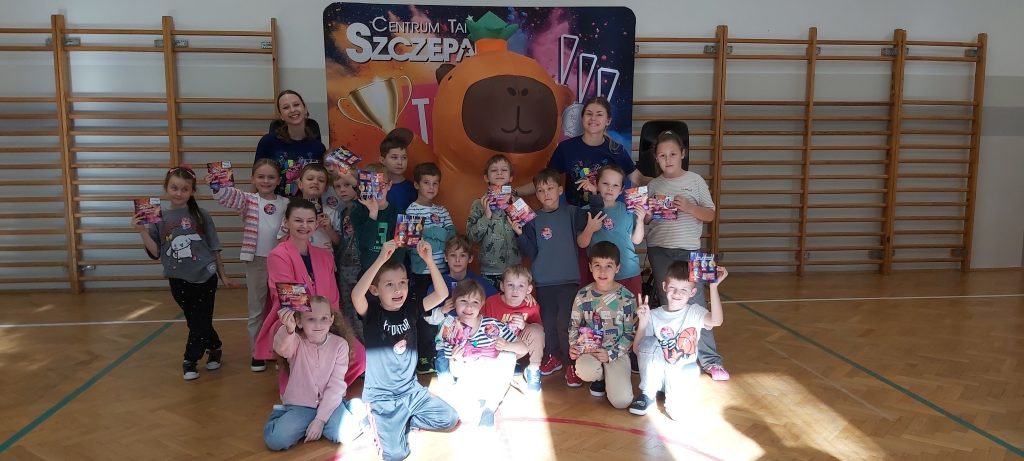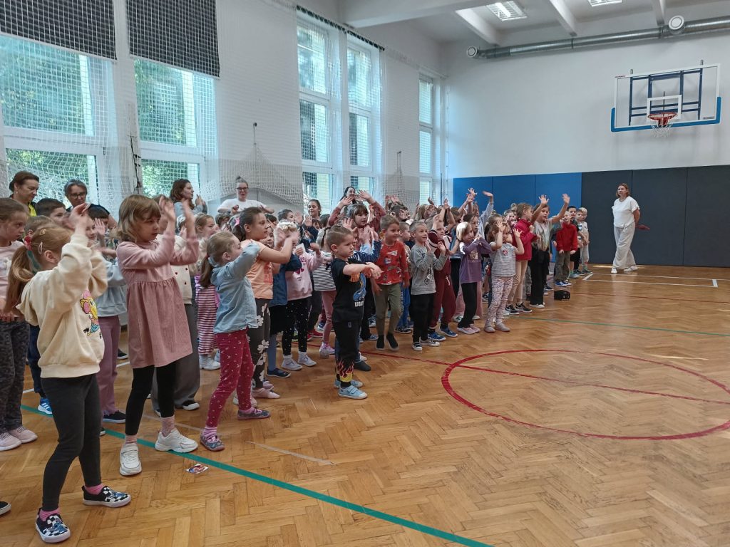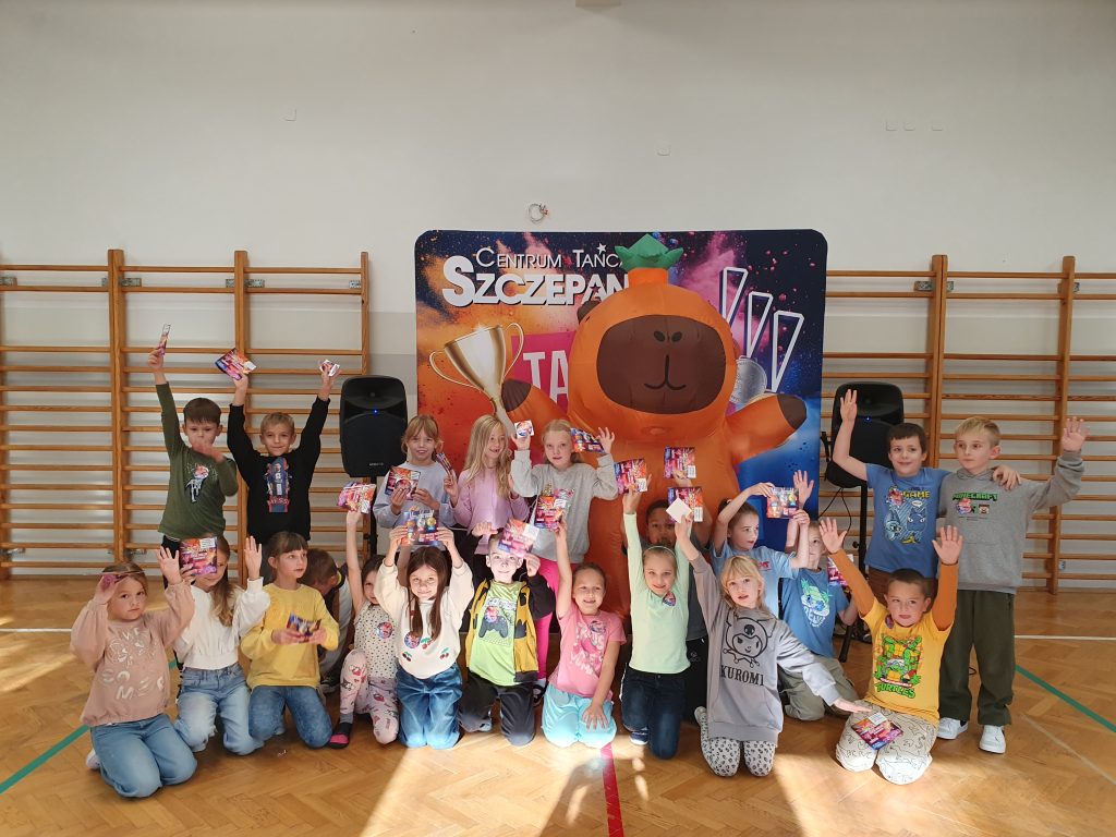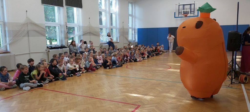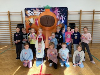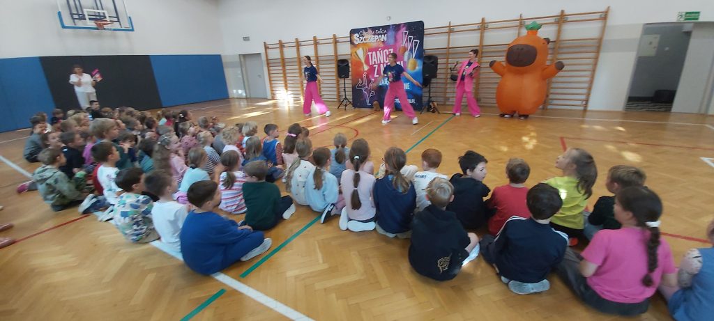 W dniu dzisiejszym uczniowie klas młodszych wzięli udział w pokazie tanecznym. Dzieci oglądały nie tylko popisy taneczne, ale także sami aktywnie włączyły się w naukę prostych układów choreograficznych. Zajęcia były doskonałą okazją do wspólnej zabawy, którą uświetniła maskotka kapibary.