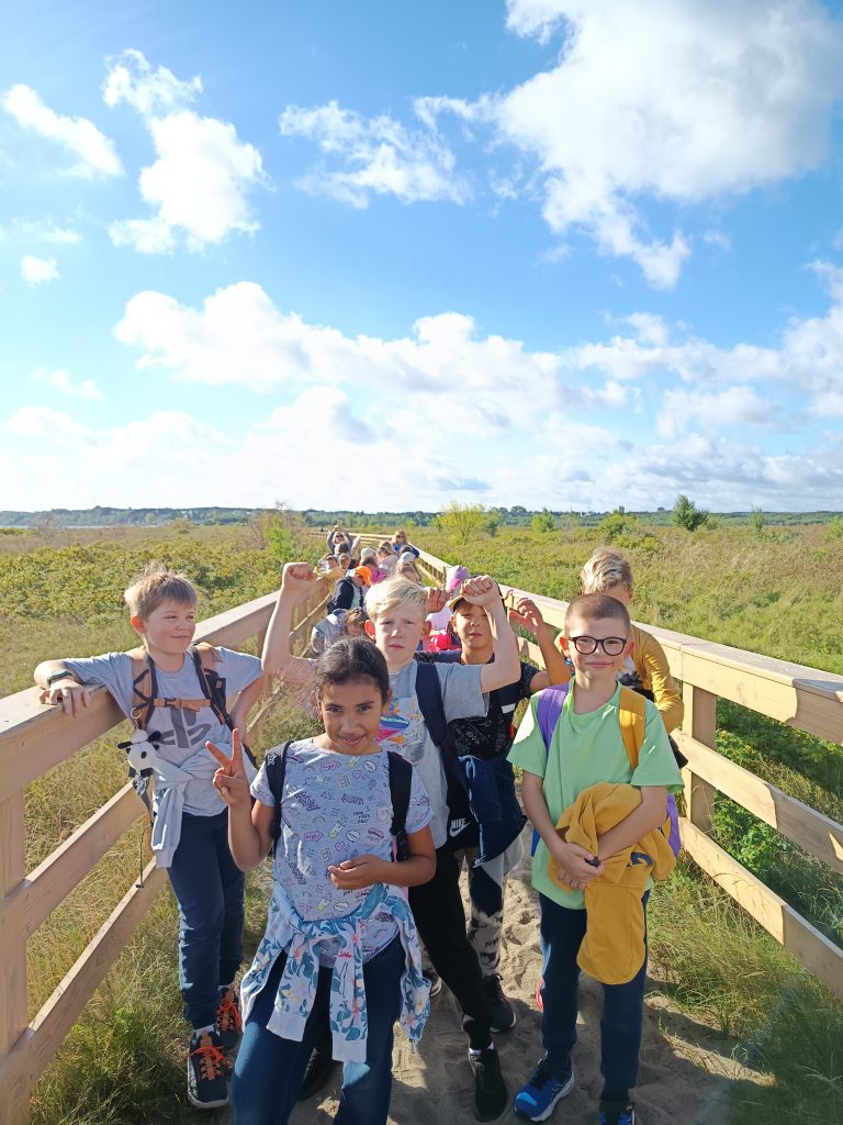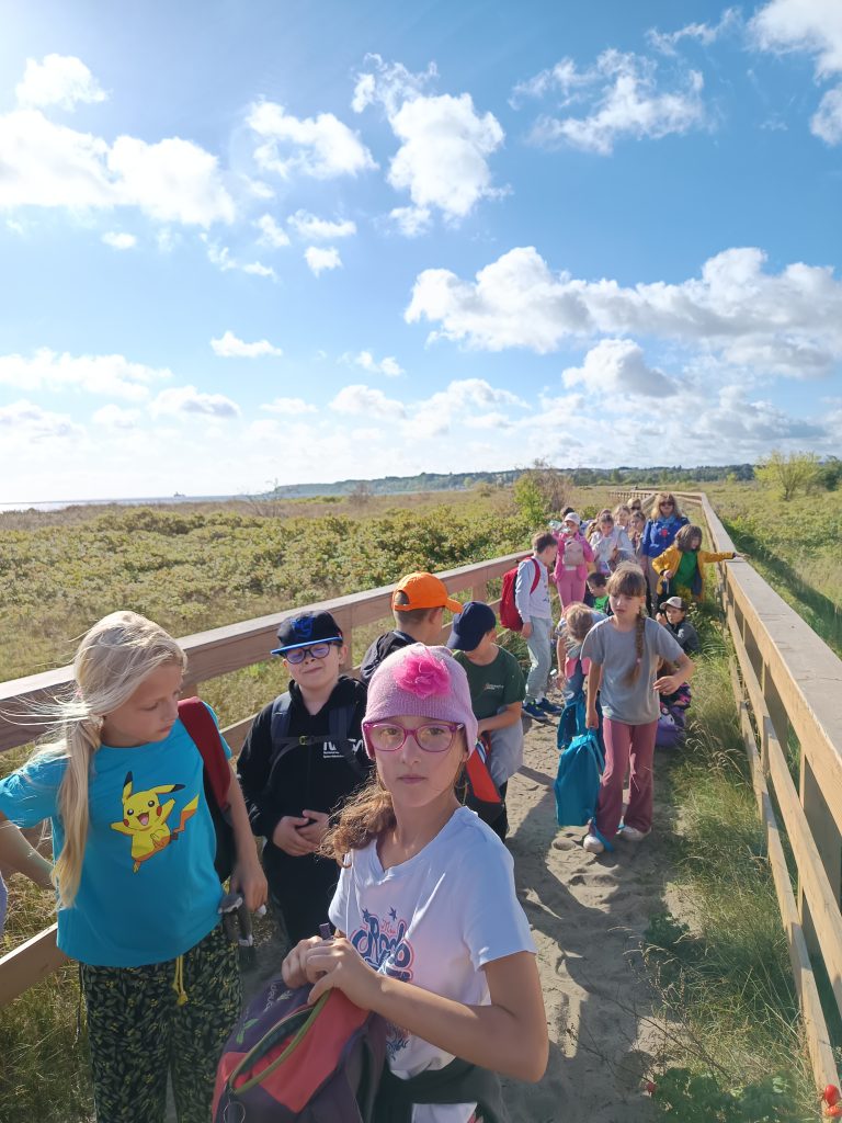 W piątek, 19 września klasy 3A i 3B wybrały się na rajd pieszy. Uczniowie dzielnie przeszli ścieżką dydaktyczną prowadzącą z Mechelinek do Rewy. Znajduje się ona na terenie Rezerwatu przyrody Mechelińskie Łąki, który jest częścią Nadmorskiego Parku Krajobrazowego. W trakcie spaceru można było zaobserwować jeden z najcenniejszych gatunków flory występujących w rezerwacie – mikołajka nadmorskiego, który jest niezwykłą osobliwością tego miejsca. Rajd zakończył się przy Krzyżu Morskim w Rewie, ufundowanym jako pamiątka dla ofiar morza. Trud pieszej wycieczki nagrodzony został odpoczynkiem na plaży, a ponieważ pogoda dopisała, zabawa była bardzo udana.