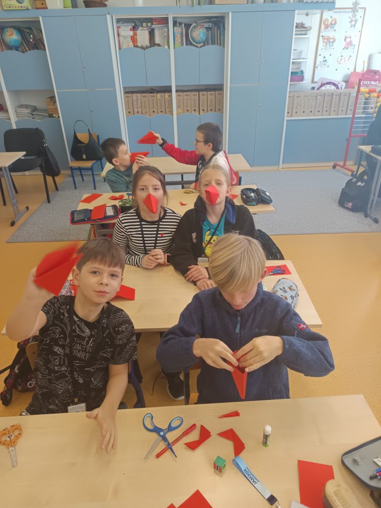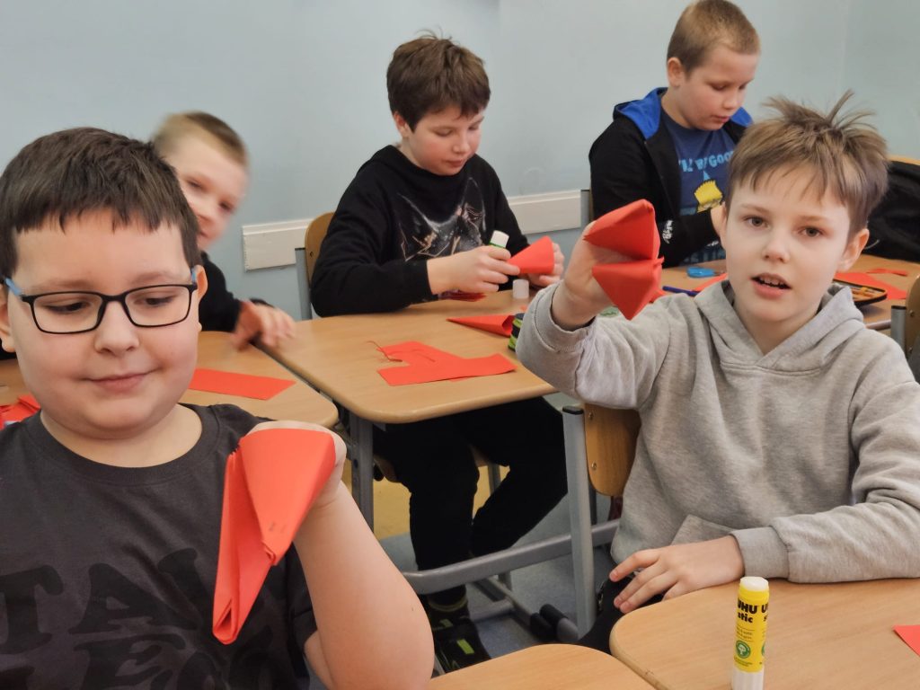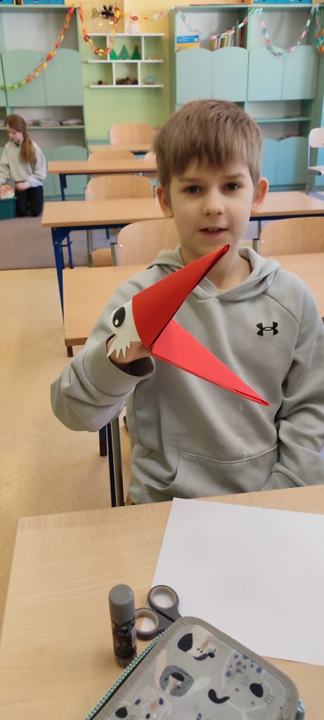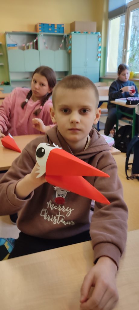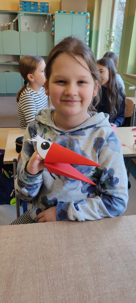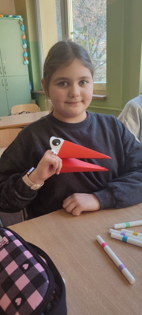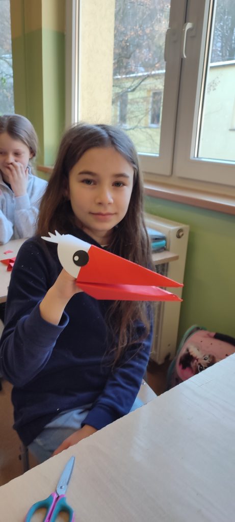 Nawiązując do tej historii, podczas warsztatów młodsi uczestnicy z dużym zaangażowaniem tworzyli głowy bocianów według wskazówek pani Barbary. Powstały również kartki urodzinowe z życzeniami dla Gdyni. Starsi uczniowie pracowali w grupach, układając zdania prawdziwe i fałszywe dotyczące historii miasta, a następnie prezentowali je na forum klasy.