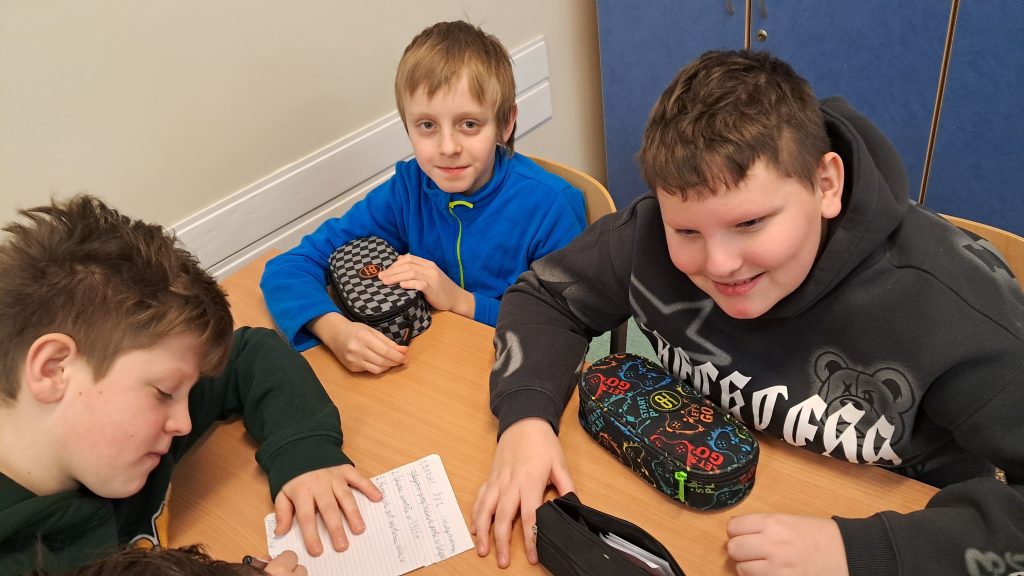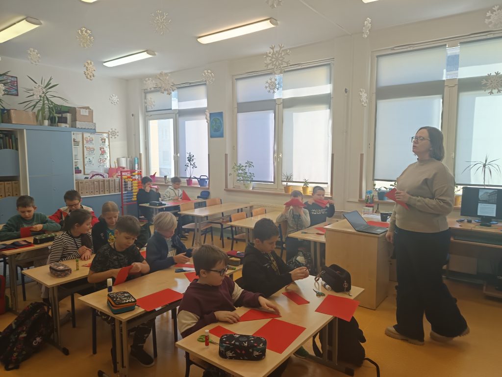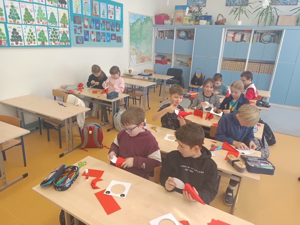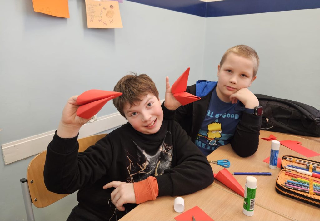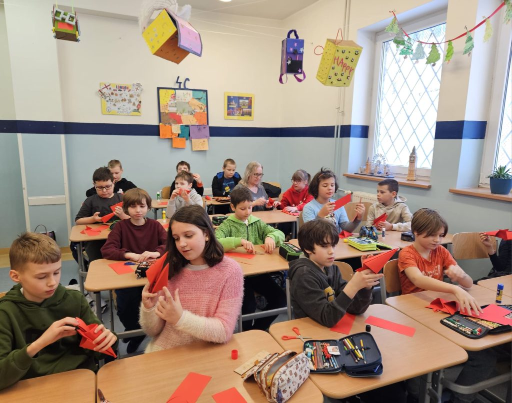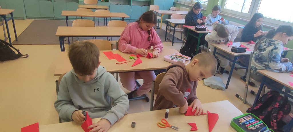 Nawiązując do tej historii, podczas warsztatów młodsi uczestnicy z dużym zaangażowaniem tworzyli głowy bocianów według wskazówek pani Barbary. Powstały również kartki urodzinowe z życzeniami dla Gdyni. Starsi uczniowie pracowali w grupach, układając zdania prawdziwe i fałszywe dotyczące historii miasta, a następnie prezentowali je na forum klasy.